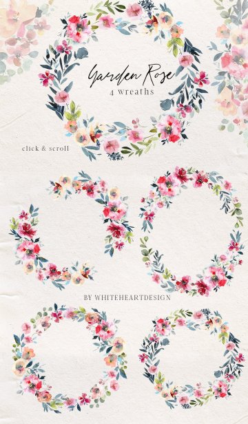 图穷联素材库 » 手绘水彩花卉植物设计素材 Garden-Rose-Water