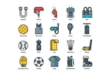 65个体育运动健身设备平面矢量图标集Sport Equipment Icons