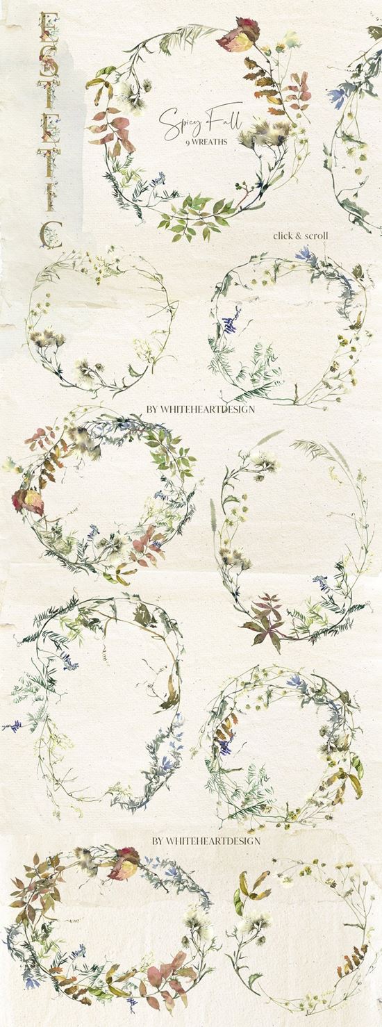 这组手绘辛辣植物插图充满温暖的香草和树叶的气味,给您的项目一些阳光和清新的设计效果。