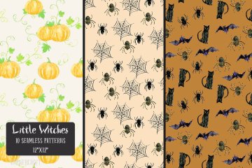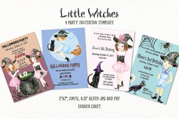 我很高兴介绍我最新的万圣节设计小女巫。设计的中心是6个万圣节服装的小女孩和男孩,以及黑猫,蝙蝠,蜘蛛,蜘蛛网,眼球,南瓜,女巫的扫帚,女巫的帽子,bu和瓶子的万圣节元素,以及模式和聚会邀请模板,很多让万圣节聚会去。