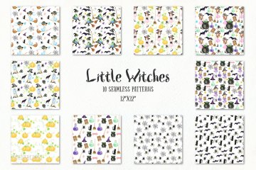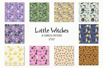 图穷联素材库 » 手绘水彩小女巫设计素材 Little-Witches-Des