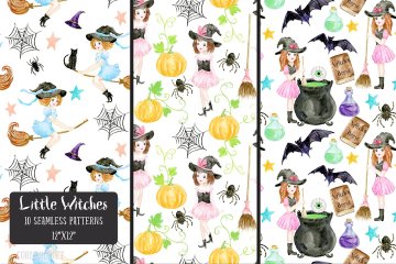 手绘水彩小女巫设计素材 Little-Witches-Des