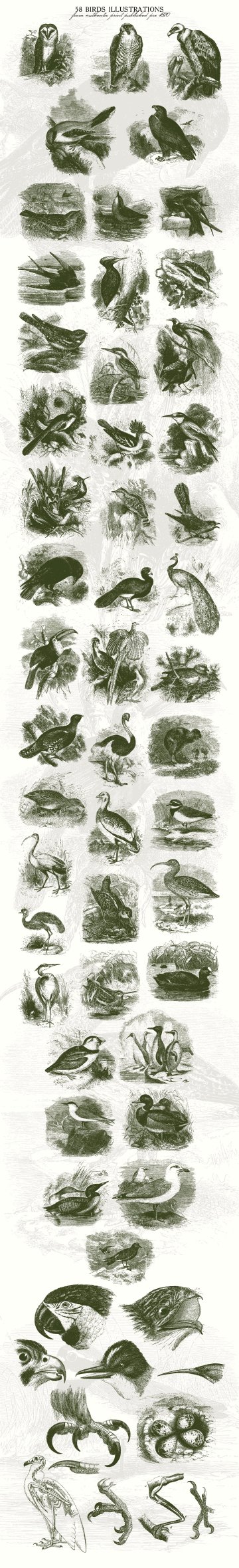 58款复古鸟类插画素材 58-Birds-Illustrat