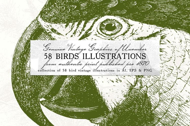 图穷联素材库 » 58款复古鸟类插画素材 58-Birds-Illustrat