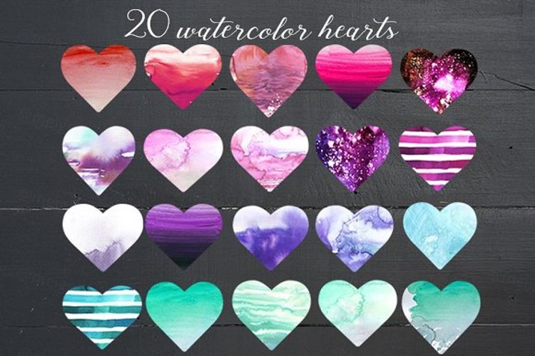 你收到:* 20 PNG水彩心 - 12x12\'(30x30cm)