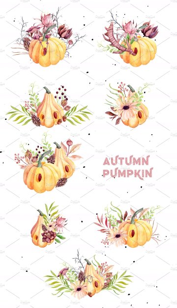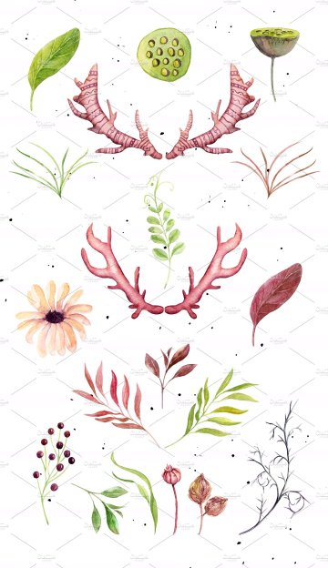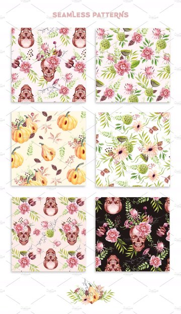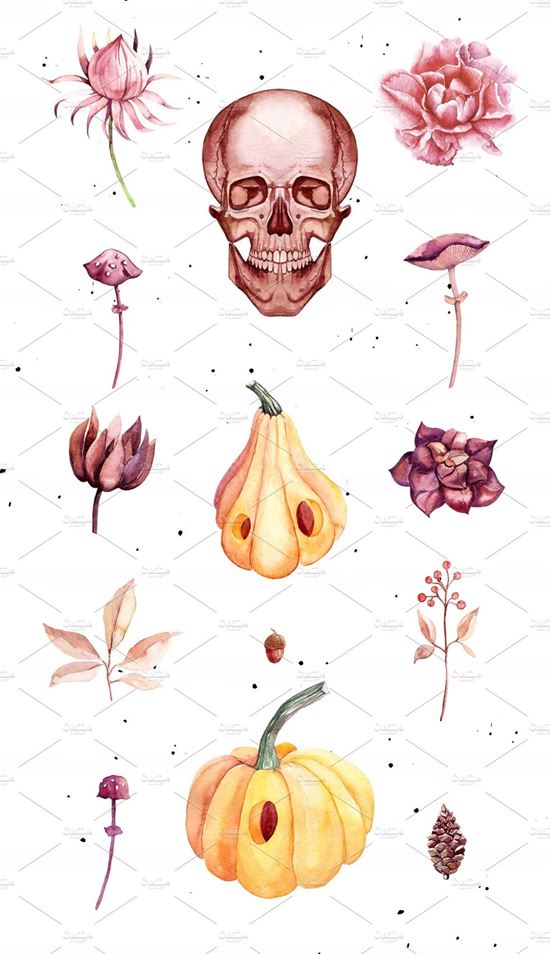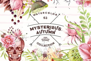 图穷联素材库 » 手绘水彩万圣节元素花卉植物设计素材 Watercolor-M