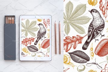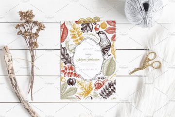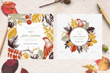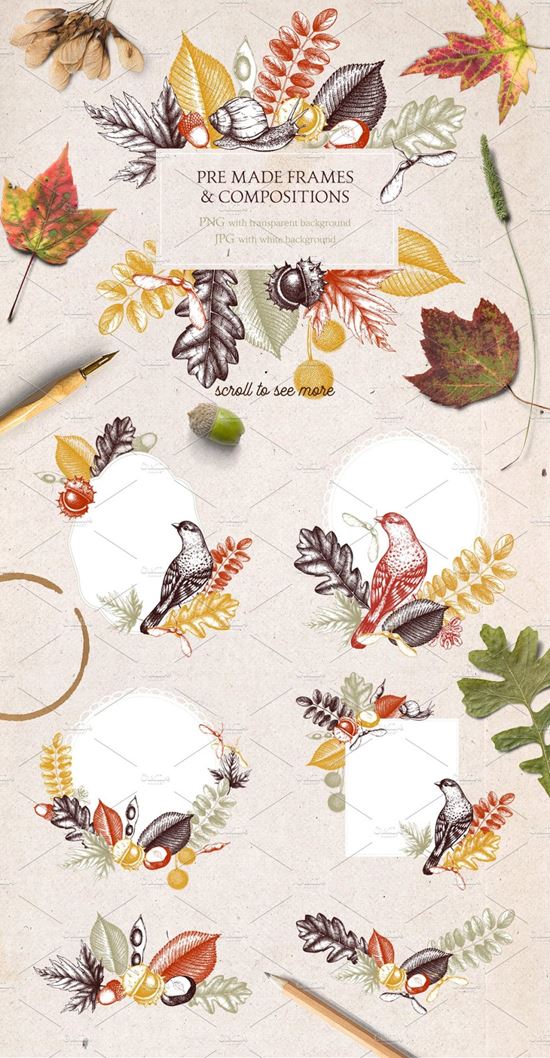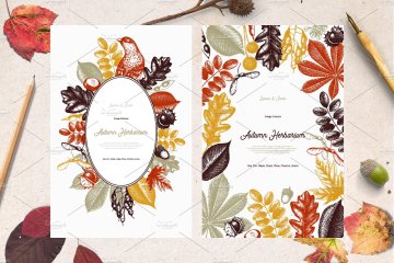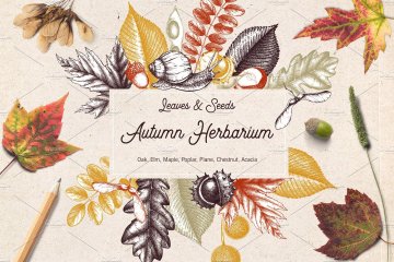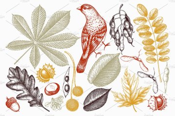图穷联素材库 » 矢量手绘秋天树叶植物插画素材 Vintage-Autumn