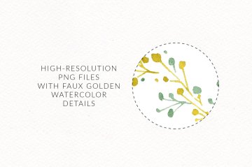 图穷联素材库 » 手绘水彩翡翠绿植物花卉花环设计素材 Emerald-Gold