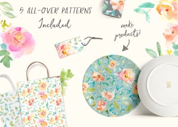 这个设计包正是您需要的水彩花卉品牌,产品,以及任何渴望美味水彩花卉善良的创作。
