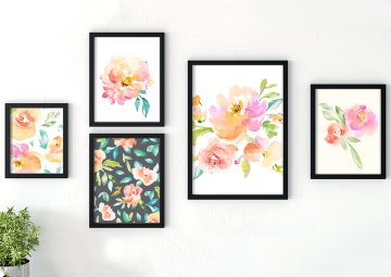 满足Peonia - 一款健壮的水彩花卉设计包......配有水彩花卉,树叶,花卉图案,花束,花圈和相框。
