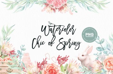 手绘水彩春天花卉植物设计素材 Watercolor-Chic