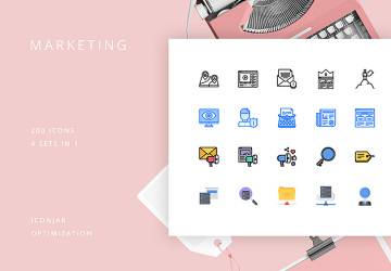 200个营销推广宣传电子商务购物矢量轮廓图标集Marketing