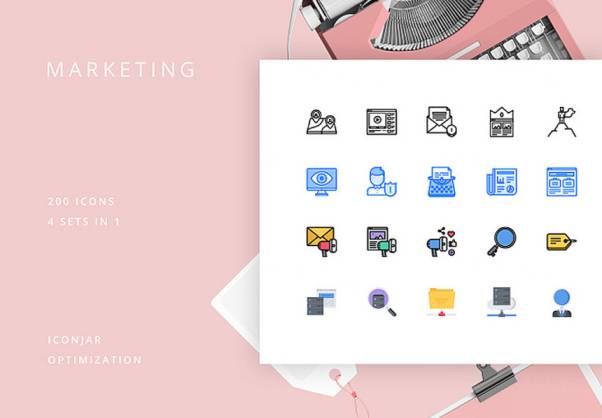 图穷联素材库 » 200个营销推广宣传电子商务购物矢量轮廓图标集Marketing
