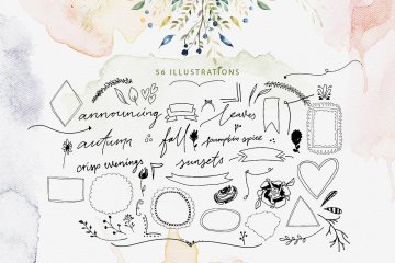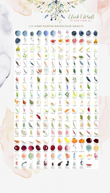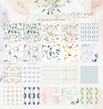 这个巨大的束装有漂亮的手绘水彩图形和图案,其用途仅受您的想象力限制。