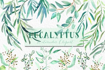 图穷联素材库 » 手绘水彩桉树树枝树叶设计素材 Eucalyptus.-Wat