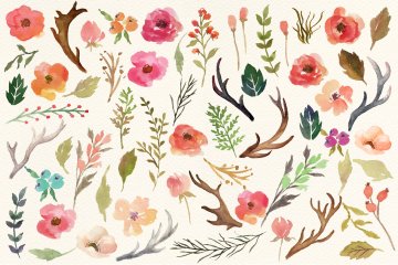图穷联素材库 » 手绘水彩花卉DIY设计素材 50Off-Watercolor