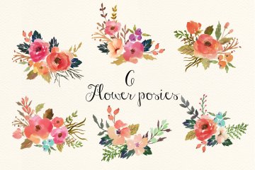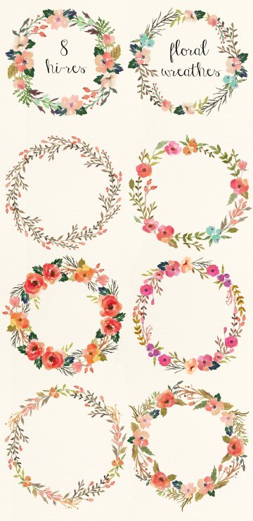 手绘水彩花卉DIY设计素材 50Off-Watercolor