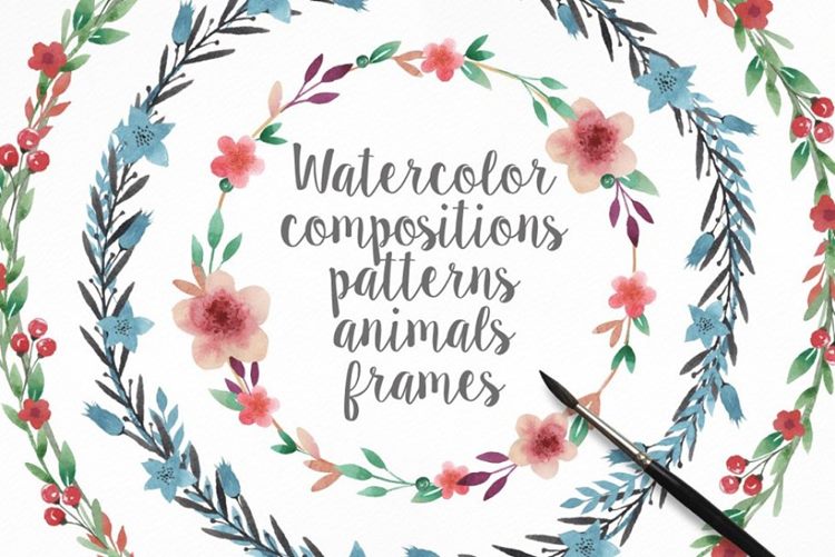 图穷联素材库 » 手绘水彩花卉动物设计素材 Watercolor-frames