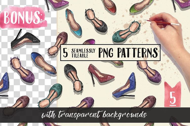 图穷联素材库 » 20双手绘高跟鞋水彩插画素材 20-Pairs-of-Sum