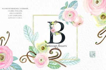 粉红色毛茛属花卉植物水彩素材 Buttercups.-Ran
