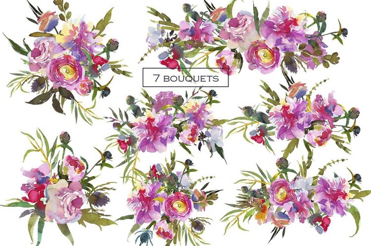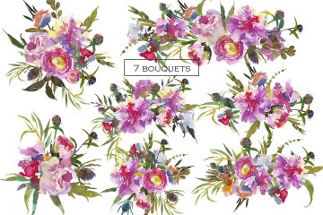 粉色牡丹水彩花卉系列包括56张PNG图像。非常适合婚礼,婴儿淋浴邀请卡,贺卡,printables,墙艺术,徽标,网页和博客设计,邀请等等。