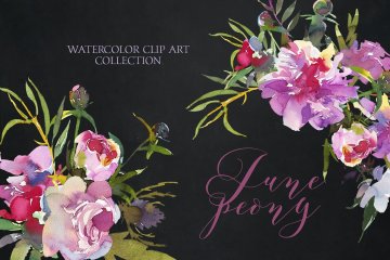 图穷联素材库 » 手绘水彩牡丹花卉设计素材 40off-Peony-Water