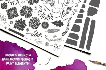 介绍完整的水彩品牌套件!它拥有您设计一个非常棒的矢量水彩标志所需的一切。没错,每个元素都经过精心绘制或绘制,然后进行扫描和矢量化,这样您就可以拥有完美清晰的图形,并完全控制徽标的大小和形状。来吧,发疯!层油漆元素和泼溅,或配对花卉元素完全独特的东西!