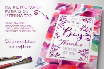 .PAT文件和.PSD示例文档中的50种水彩图案。
