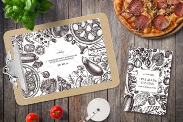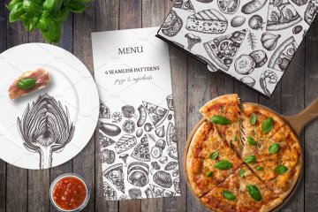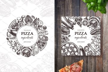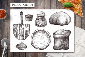 图穷联素材库 » 复古手绘快餐披萨插画素材 Pizza-Ingredients