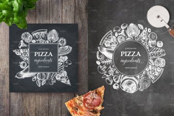 复古手绘快餐披萨插画素材 Pizza-Ingredients