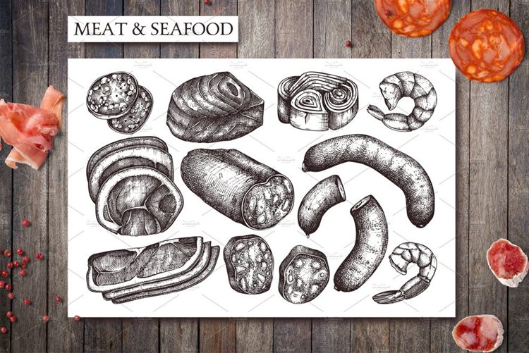 5款手绘和高度详细的食物插图。