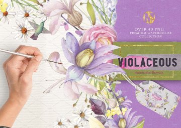 图穷联素材库 » 紫罗兰色水彩花卉插画素材 Violaceous-waterc