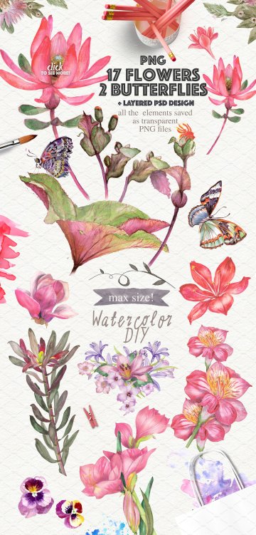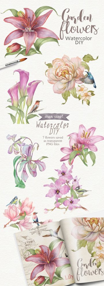 图穷联素材库 » 手绘水彩花卉装饰素材 Amazing-garden-100-