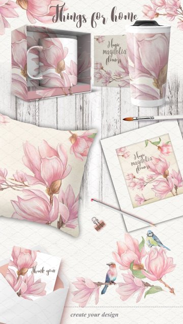 “魔法玉兰”{86,3 mb}现成的分层PSD设计2146x2401 px 300 dpi,7朵花PNG