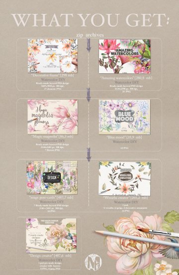 这款包含惊人水彩画,7种产品中的100种PNG元素,包括您喜爱的所有产品 - 鲜花,树叶,枝条以及任何设计和项目的元素!