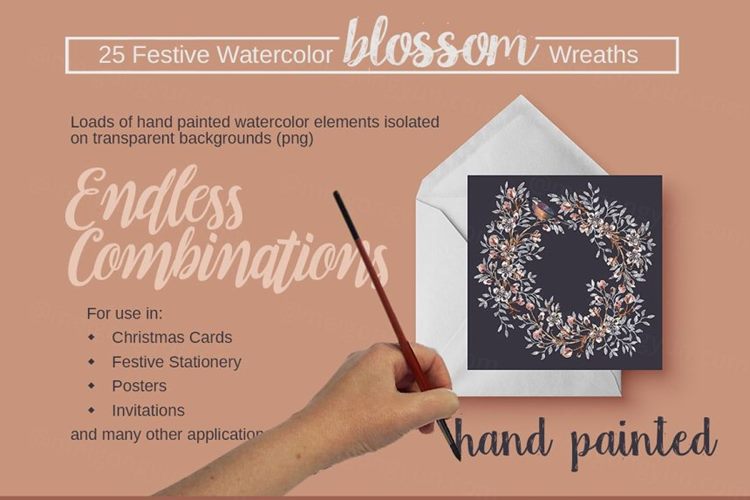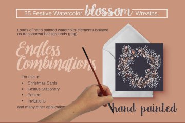 图穷联素材库 » 圣诞主题手绘水彩装饰素材 Christmas-in-Full