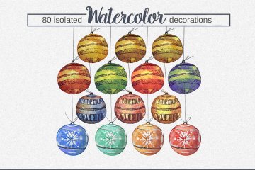 圣诞主题手绘水彩装饰素材 Christmas-in-Full
