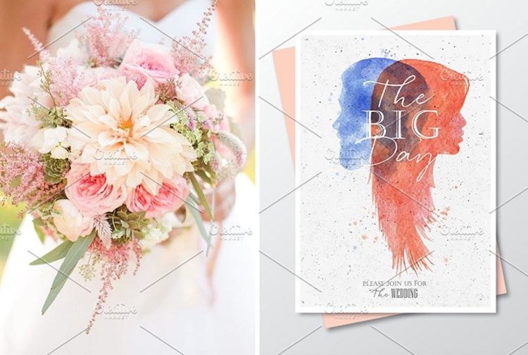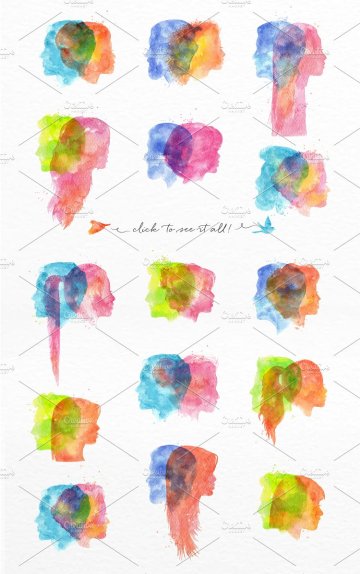 图穷联素材库 » 手绘水彩图案装饰素材 Wedding-face