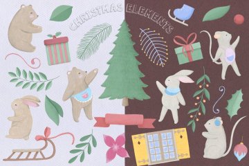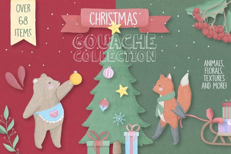 图穷联素材库 » 圣诞主题圣诞元素插画素材 Christmas-Gouache