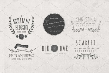 此矢量套件包含12个预先设计的徽标和60多个矢量元素,为您带来创意乐趣!有各种新形状,卷发,漩涡,树枝,横幅,树叶等。您可以创建自己的徽标,也可以只使用12个提供的模板中的一个。所有字体都是为这个项目精心挑选的,可以免费下载(我已经包含了一个带有你需要的字体链接的.pdf)。只需下载并安装列出的字体,在Illustrator中打开矢量文件,即可为您的业务打造品牌。