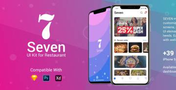 图穷联素材库 » 餐饮美食餐厅外卖预定移动手机APP UI工具包Seven Restaurant