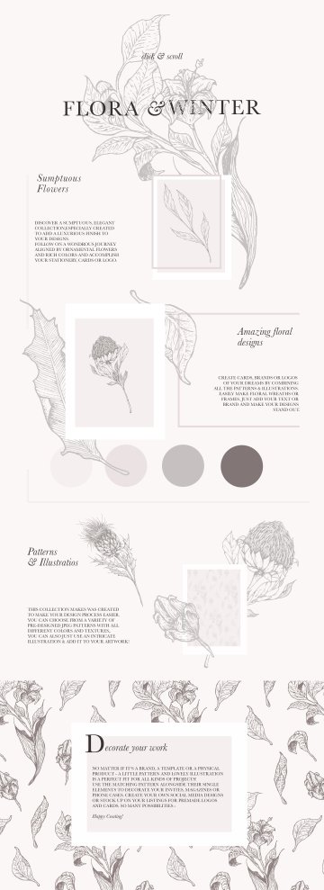 图穷联素材库 » 矢量手绘精致的花卉插图素材 Floral-Patterns-