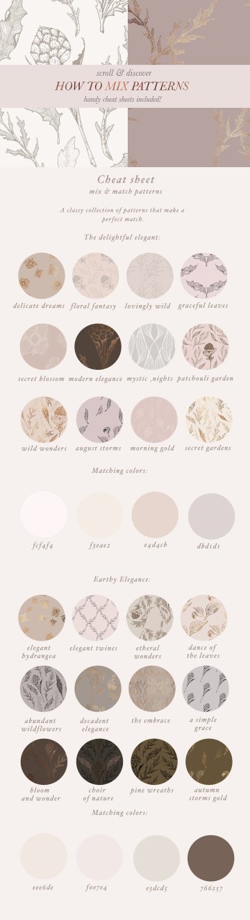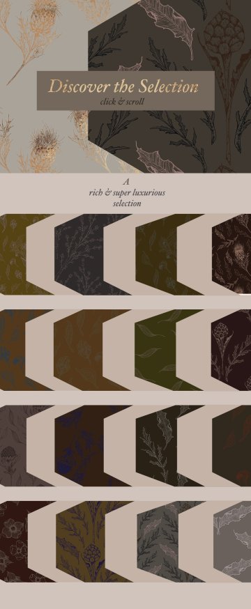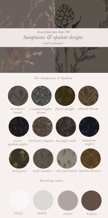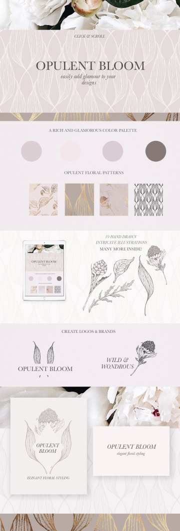 欢迎来到奢华的花卉图案和复杂的手绘插图的合集!这个合集包含30种不同的无缝矢量图案和100个高分辨率的JPEG瓷砖图案。