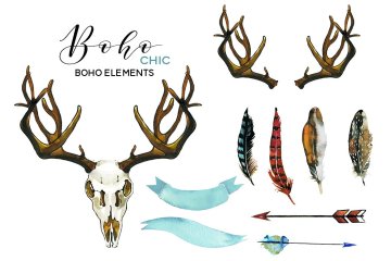 图穷联素材库 » 波西米亚风格手绘水彩花卉装饰素材 45off-1-day-B