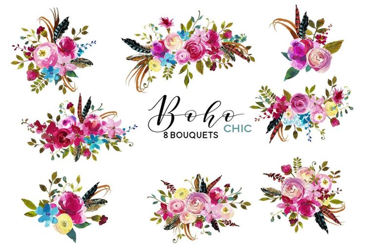 波西米亚风水彩花卉系列包括超过90张PNG图像。非常适合婚礼,婴儿淋浴邀请卡,贺卡,printables,墙艺术,徽标,网页和博客设计,邀请等等。