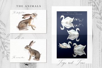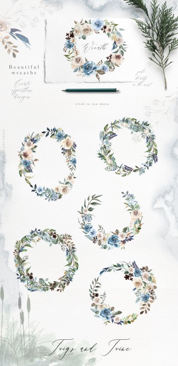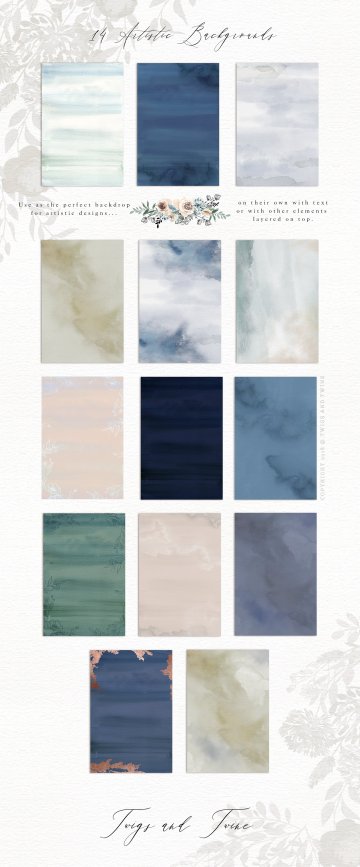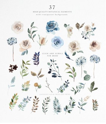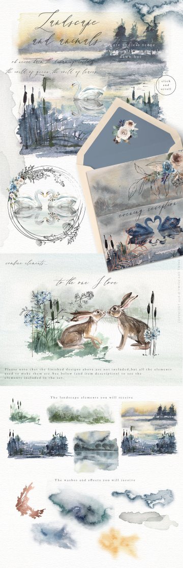 图穷联素材库 » 手绘水彩浪漫花卉湖边丛林元素设计素材 Graphic-Set