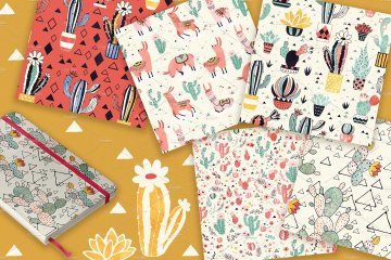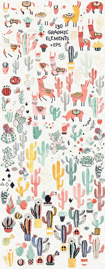 骆驼和仙人掌。一个有趣的手绘图形和图案包,准备创建您的DIY项目,墙艺术,儿童房间装饰,邀请函,贺卡,面料,包装等。