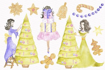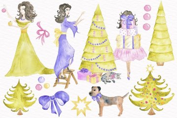 图穷联素材库 » 手绘水彩圣诞主题艺术插图素材 A-Merry-Little-