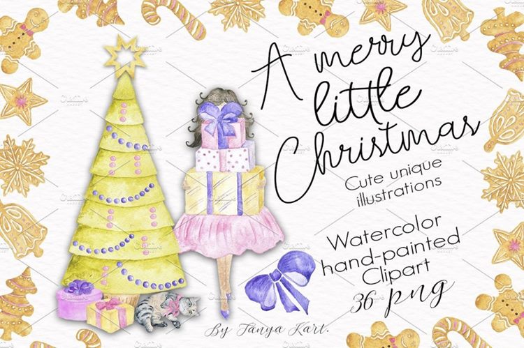 手绘水彩圣诞主题艺术插图素材 A-Merry-Little-