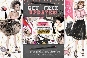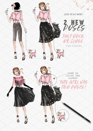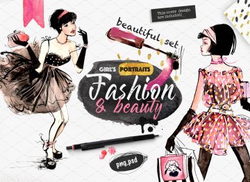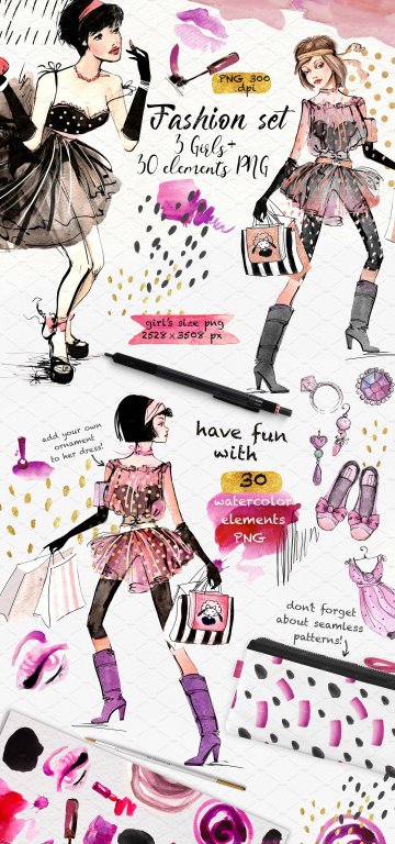 图穷联素材库 » 矢量手绘水彩时尚女孩手绘涂鸦设计素材GIRLS-AND-PA